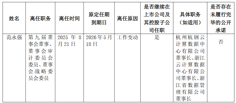杭钢股份:范永强因工作变动辞去董事职务