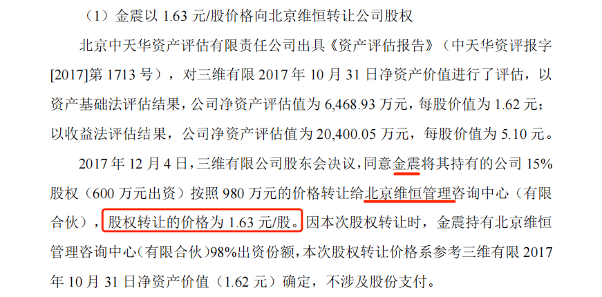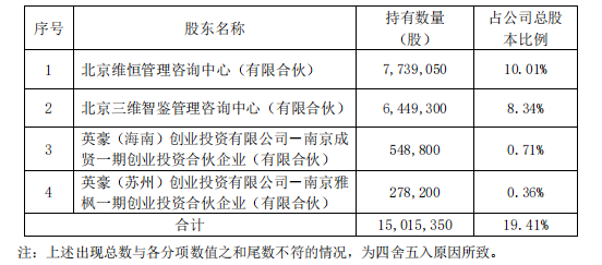 招股书显示,北京维恒、三维智鉴合伙人之间的关联关系为:金震配偶李美兰系北京维恒的有限合伙人,持有北京维恒16.67%的股份;金震外甥女郑秋月系三维智鉴、北京维恒的有限合伙人,持有北京维恒7%的股份,持有三维智鉴1%的股份。