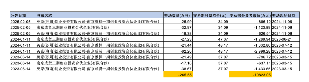 这已经不是公司股东第一次减持。2023年至2025年,成贤一期、雅枫一期和成贤三期曾合计减持266万股,套现超过1亿元。