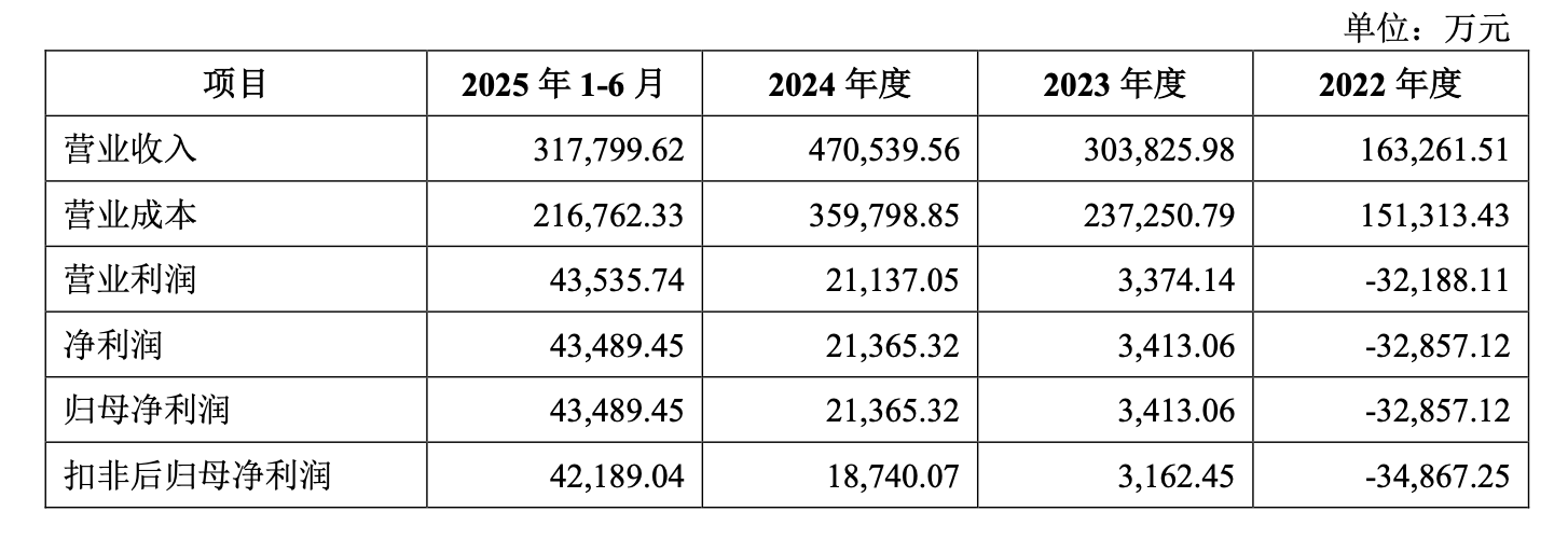 从业绩来看,盛合晶微近年来转好,报告期内营业收入分别为16.33亿元、30.38亿元、47.05亿元和31.78亿元,归母净利润在2023年由负转正,从2022年的亏损3.29亿元转为盈利3413万元,2024年进一步增长至2.14亿元,2025年上半年更是达到4.35亿元,半年内的利润就超过了2024年全年的两倍。