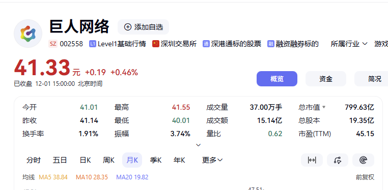 震惊游戏圈:一个爆款,让巨人网络市值暴涨226%