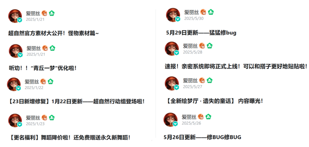 特别难得的是,在忙于版更期间,项目组也保持着近乎“日更”的沟通习惯,坚持每天发布好几条有料的公告,有时是整理素材,有时是出一期视频讲解,有时又列了长长的一条bug修复清单,几乎每天都在肉眼可见地进步。