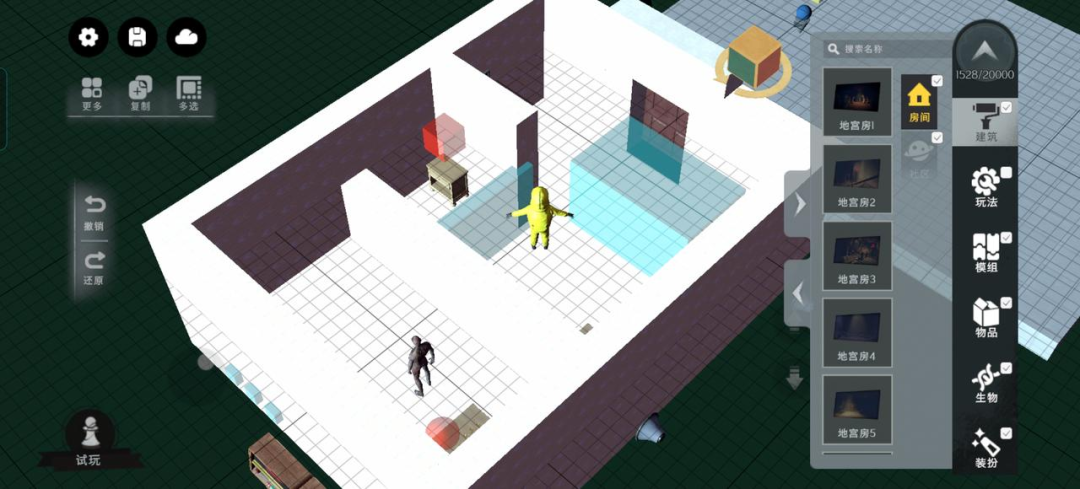 其它诸多内容扩展中,“鬼屋广场”或许是最能体现团队长期思路的一环。这个功能类似于创意工坊,作为玩家的主场,官方很少直接干预内容,而是不遗余力地提升它的自由度:提供大量可直接调用的场景、建筑模组与自定义组件,并将编辑工具打磨得足够直观。
