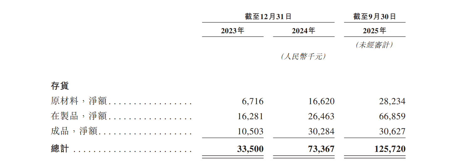 2025年三季度末,桑尼森迪的存货金额为1.3亿元,已经较2023年增长了近3倍。虽然不代表公司年末时存货一定仍保持如此高位,但存货的高增长已经是不争的事实。
