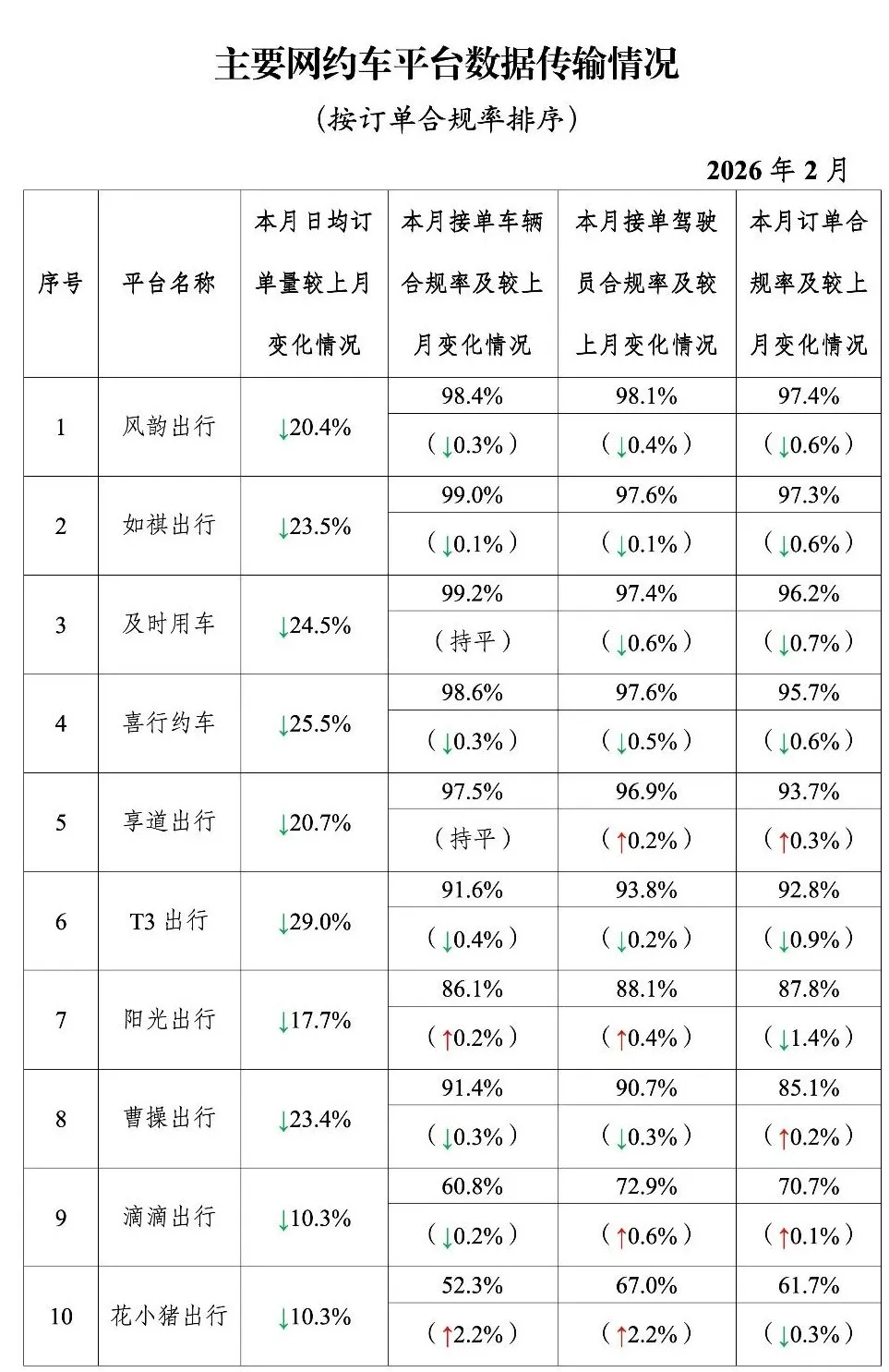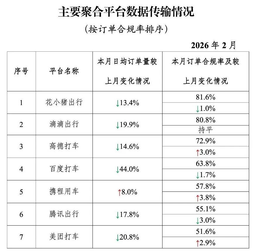 网约车监管信息交互系统发布:2月订单合规率向好 多地超全国平均水平