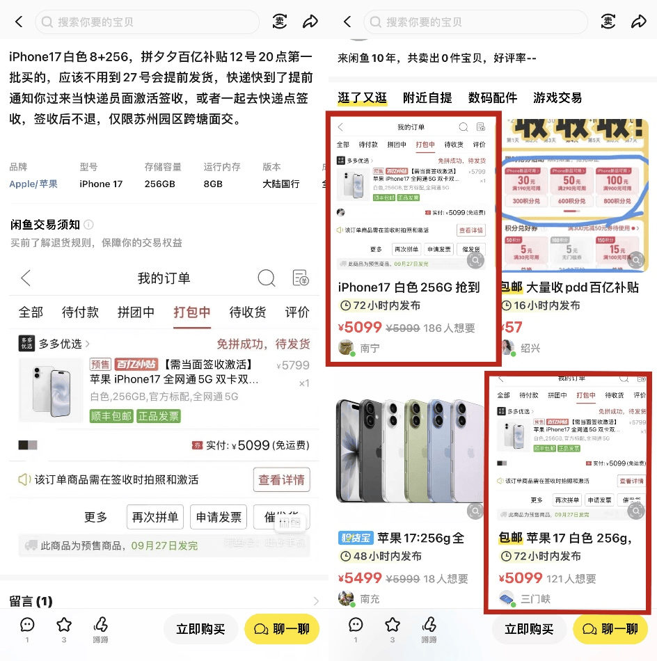 但即便如此,在二手平台仍可见通过拼多多百亿补贴渠道流入的iPhone新机转卖。这意味着,黄牛行为可能并未消失。