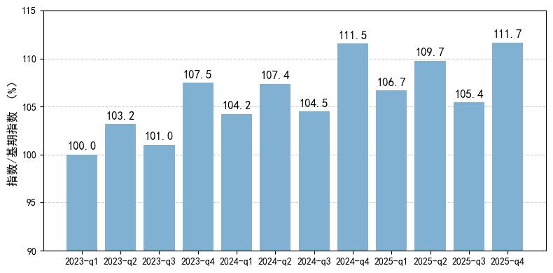 中国线上消费品牌指数(CBI)的数据进一步印证了这一趋势:以2023年第一季度为基期,2025年第四季度相比基期增长了11.7%。这一指数基于淘宝天猫真实消费行为编制,综合了千万级别的品牌的搜索、新品、年轻人群增长等核心指标,量化体现线上消费的品质,是个非常权威的消费大数据研究。