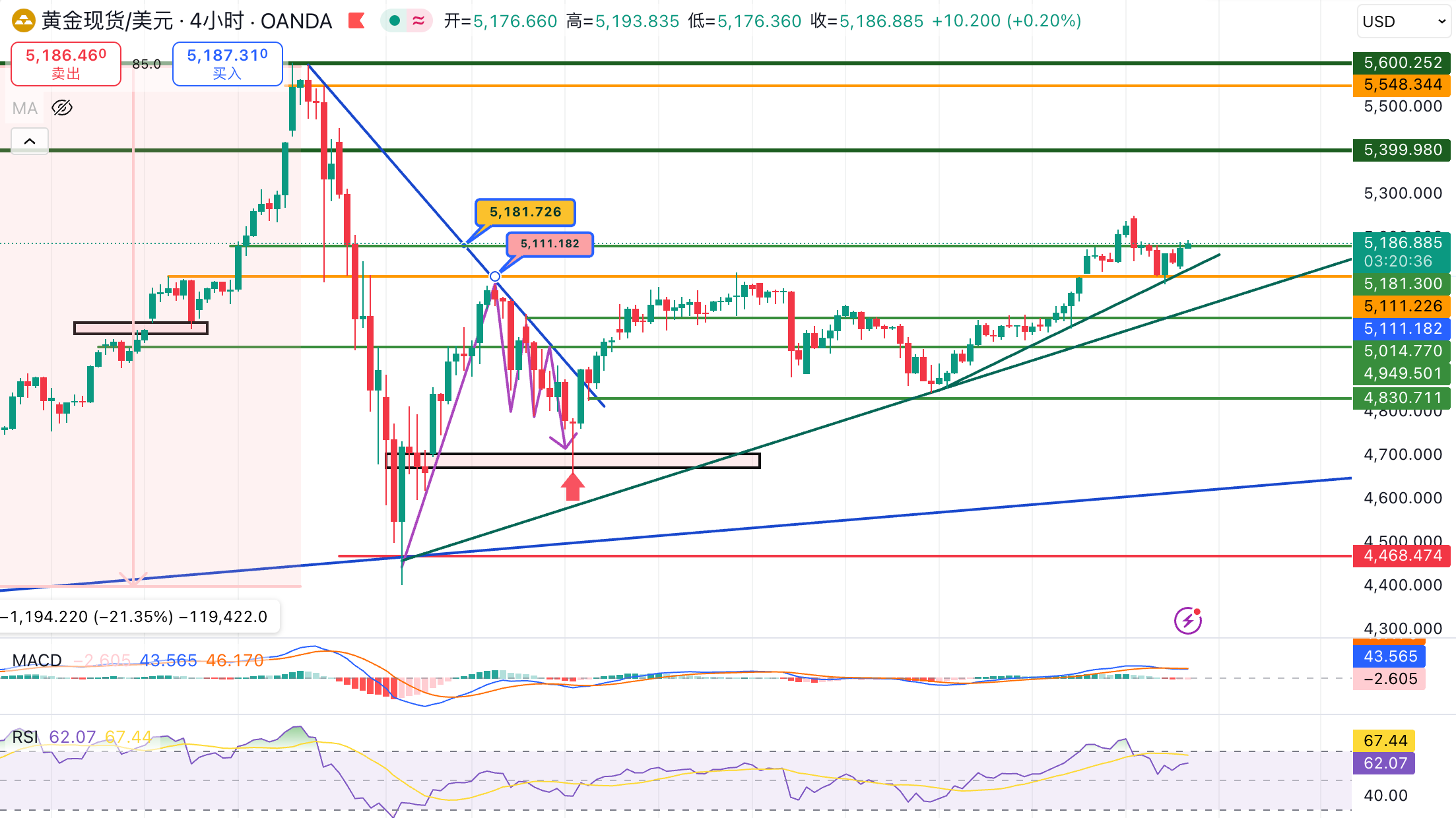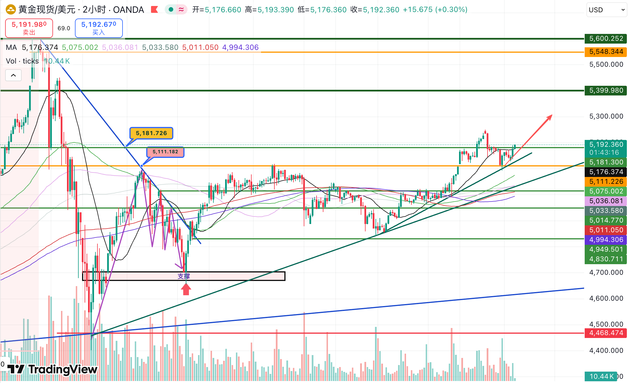 结构上,5181已被市场确认;节奏上,金价仍处在回踩即支撑的多头阶段。