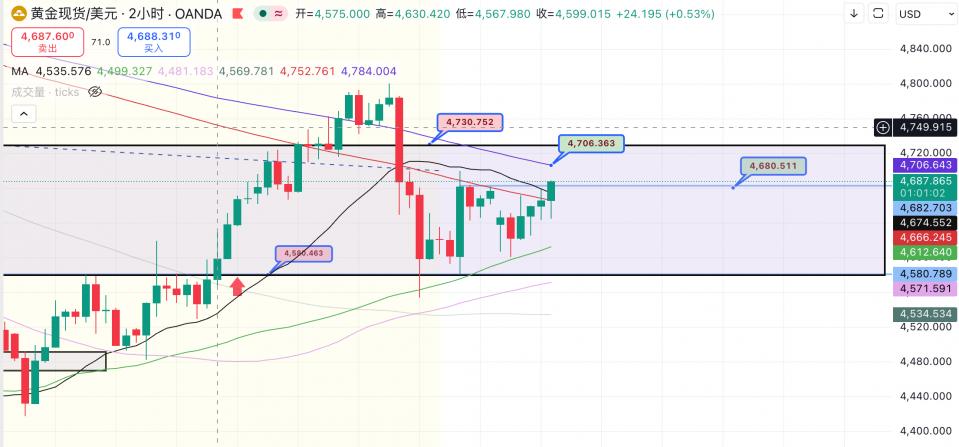 另一种情况是,如果金价冲破4680阻力,则打开上行空间(暂停空单布局),上方目标位可看至4705。