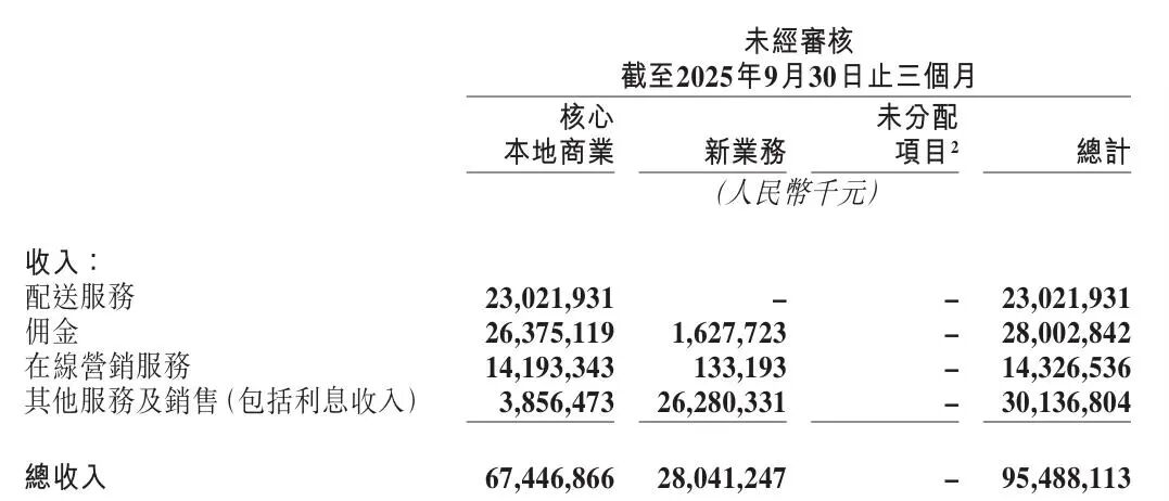 在收入贡献上,尽管美团从未披露金融业务的单独营收,但结合牌照布局、产品体量、交易情况及金融类资产发行量等表现,其金融业务规模或已相当庞大,在集团总营收中的占比也不容小觑。例如,2025年第三季度,美团954.88亿元总收入中,配送服务、佣金、在线营销服务和其他服务及销售(包括利息收入)分别为230.22亿元、280.03亿元、143.27亿元和301.37亿元。可以看出,“其他服务及销售(包括利息收入)”是营收贡献度最高的板块,这其中包含新业务商品销售等非金融收入,同时也涵盖了金融相关的利息收入、支付手续费等收入。
