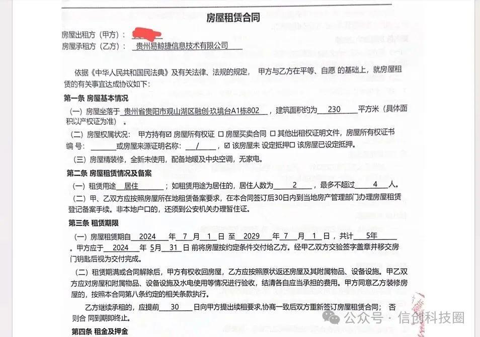 易鲸捷的租赁合同,或者说新办公地址,证实了《北京青年报》报道的准确性,即贵州易鲸捷不仅人去楼空,且时间为2024年5月。