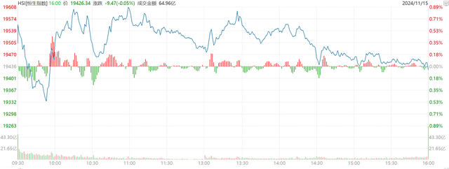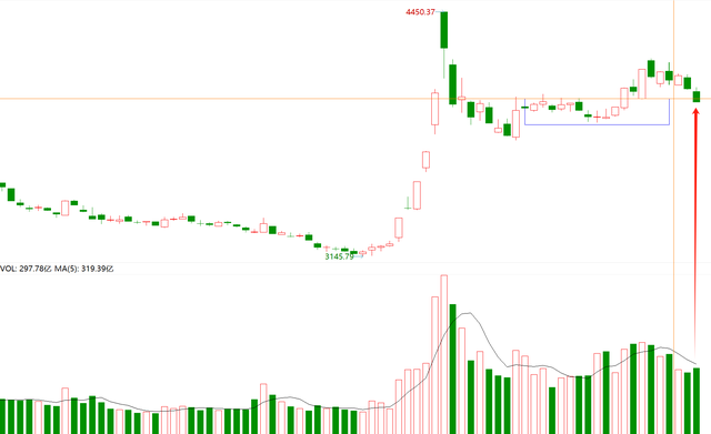这是今天恒生指数的分时图,多空双方在这个区间内博弈得非常激烈,你来我往,互不相让,但我们看到的是,多头越来越颓势,恒指收盘的时候也是由红变绿。
