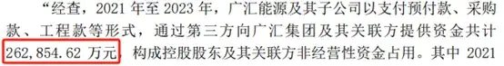 2021年到2023年,广汇能源及其子公司以支付预付款、采购款、工程款等形式,通过第三方向控股股东广汇集团及其关联方提供资金共计26亿+。稍作安慰的是截至东窗事发,上述占用款项已经归还。只是不曾想,上市公司的资金竟如此“来去自如”?