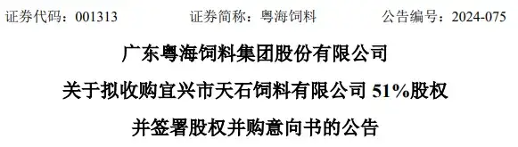 此外,粤海饲料还在筹备收购宜兴市天石饲料有限公司51%股权,并签署了股权并购意向书。