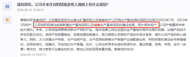 此前,粤海饲料收入主要来源于国内。不过根据公开资料显示,粤海饲料在越南的水产饲料生产基地,预计明年也将投产。