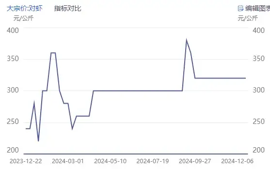 但从数据来看,下半年水产市场已有所回暖。以对虾价格为例,上半年一度低至220元/公斤,但自10月起已基本稳定在320元/公斤。