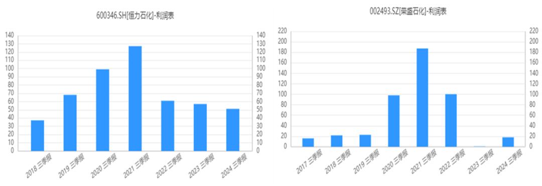 来源:iFinD-净利润,恒力石化(左)荣盛石化(右)