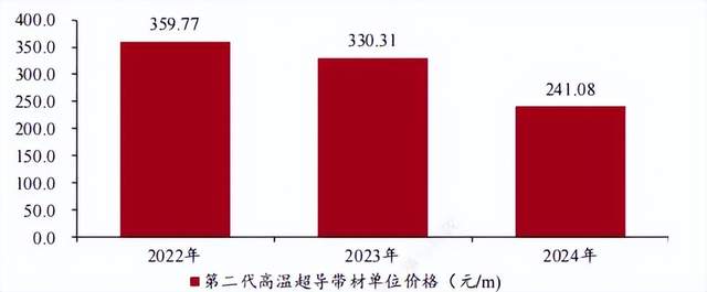 叠加笔者前面提到的国家队入场,虽然高温超导目前仍处于产业化的初期,而且上游材料制备工艺比较复杂,价格还是比较高的,比如高温超导带材的价格基本在100-300元/米之间,后续仍然有较大的降本空间。