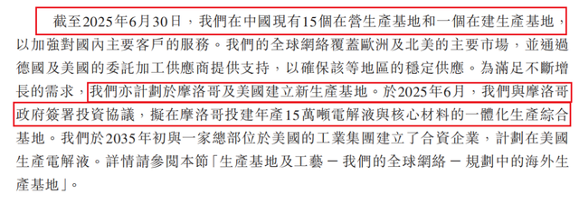 《招股说明书》显示,截至2025年6月30日,天赐材料持有的现金及现金等价物约为13亿元,而仅摩洛哥一地的项目计划投资就达到2.8亿美元,更不必说其他潜在北美、东南亚等区域的布局需求。面对全球产能竞争与技术迭代的双重压力,公司亟需一个更具国际竞争力的资本平台以支撑其战略投入。