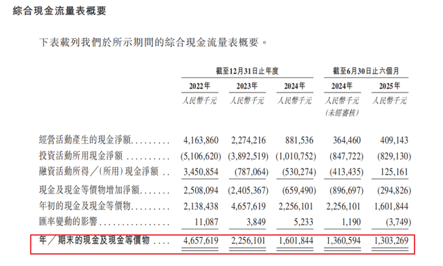 现金流情况 摘自《招股说明书》