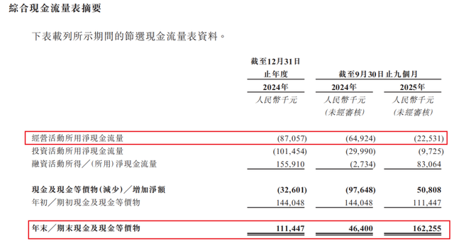真正的压力来自现金流层面。2025年前九个月,公司经营活动产生的现金净流出2253.1万元,这意味着公司的主营业务自身尚无法产生足够的现金回流。截至2025年9月30日,公司账上的现金及现金等价物为1.62亿元。若以当前的亏损和现金消耗速度估算,在不进行外部融资的情况下,这笔资金仅能维持公司约38个月的运营。