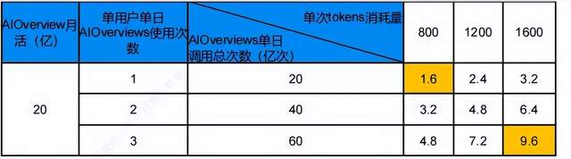 就以谷歌为例,公司2024年5月上线AI Overview功能,至2025年二季度,AI Overview功能月活已超20亿,可以推断出AI Overview功能单日tokens消耗量在1.6至9.6万亿区间内。