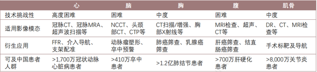 院内AI不同部位临床价值及技术壁垒 来源:数坤科技,头豹研究院