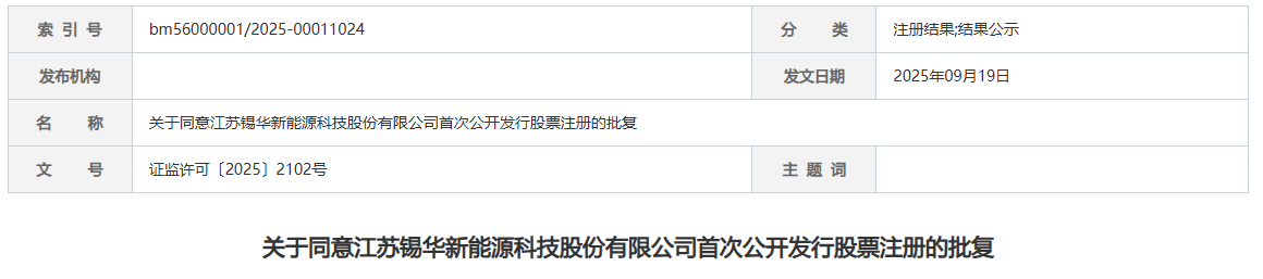 2025年9月19日,江苏锡华新能源科技股份有限公司(简称“锡华科技”)正式获得中国证监会批准在上交所主板注册。这一里程碑事件标志着这家深耕大型高端装备专用部件领域二十余载的龙头企业,即将迈入资本市场新纪元。作为新能源风电装备领域的关键供应商,锡华科技此次IPO获批不仅为企业发展注入强劲动能,更将推动我国新能源产业向更高质量发展迈进,成为培育新质生产力的重要实例。