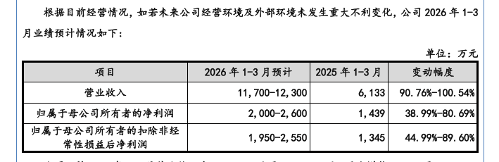 2026年Q1营收预增超90%