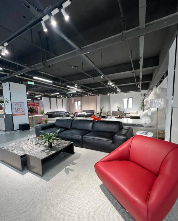 展厅内陈列了各种风格的家具,从意式轻奢到简约时尚,再到新中式风格,应有尽有。无论是大到沙发、餐桌,还是软床、茶几,这里都能找到你需要的全屋家具。