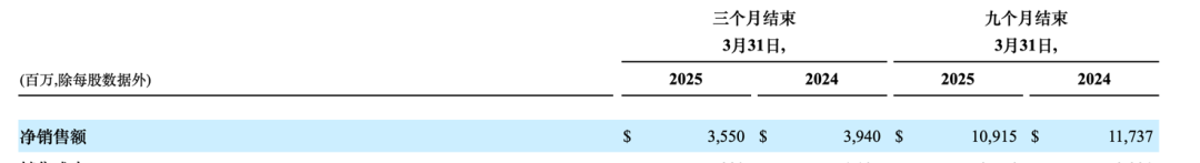 从净销售额的同比变化来看,雅诗兰黛已经连续三个财年下滑,从2022财年Q3的55.39亿美元一路滑坡至2025财年Q3的35.5亿美元。