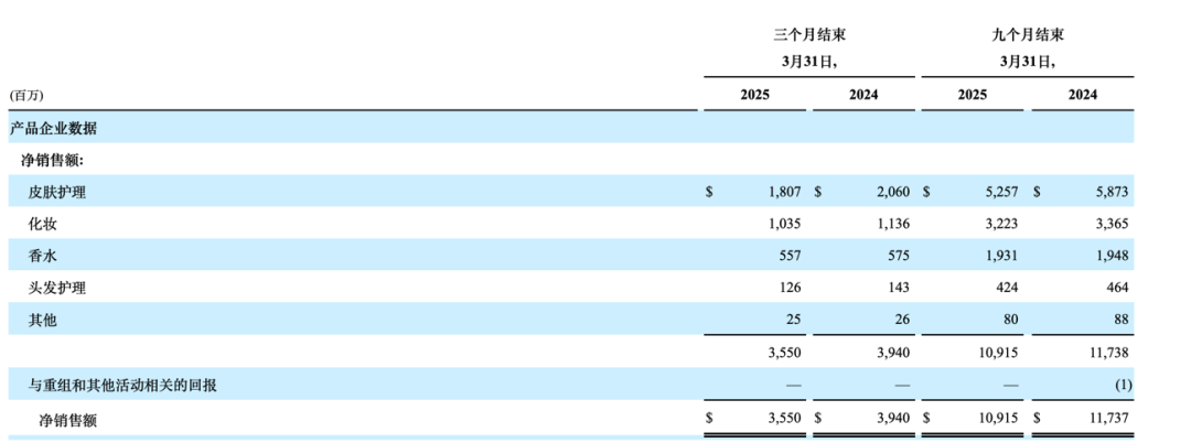 近日,雅诗兰黛公布了2025财年第三季度财报,在连续两个季度的亏损之后,第三季度雅诗兰黛的净利润回升至1.59亿美元,环比由亏转盈,但与2024财年同期相比,依然下滑了52.53%;净销售额为35.5亿美元,同比下滑了10%,环比也下滑了11%。