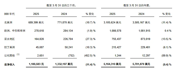 以2024财年为例,其占集团营收70%以上的美洲市场增长乏力,低至4%;增长最强劲的张国大陆市场年度增速41%,但具体呈波动下滑态势。