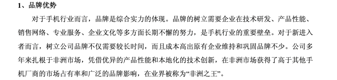作为一家深耕非洲手机市场起家的手机品牌,传音依靠着在当地发掘夫妻店等本土化运营,避开一众国内外手机大厂的锋芒,建立起品牌和渠道的护城河。甚至在财报中,传音也以“非洲之王”自居。