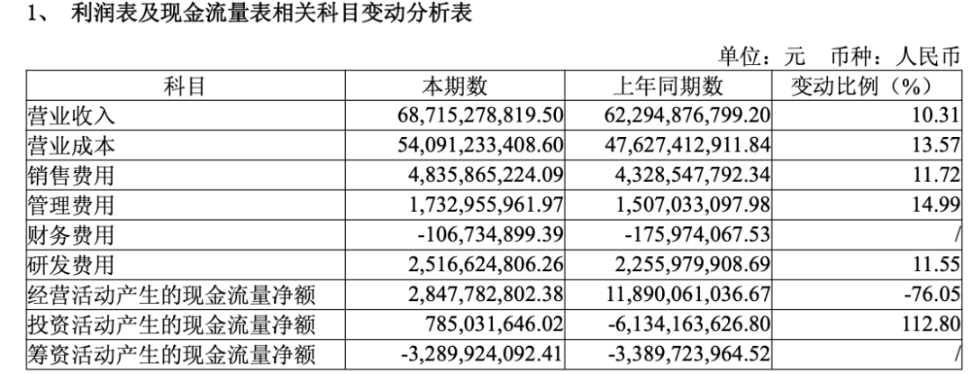 根据财报数据,2024年传音的销售费用为48.36亿元,同比增长了11.72%;研发费用为25.17亿元,同比增长11.55%;营业成本为540.91亿元,同比增长13.57%。
