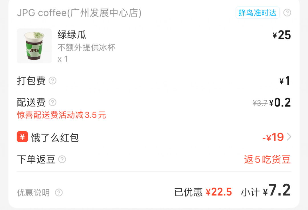 在广州可以点到7.2元的JPG咖啡 | 来源:饿了么