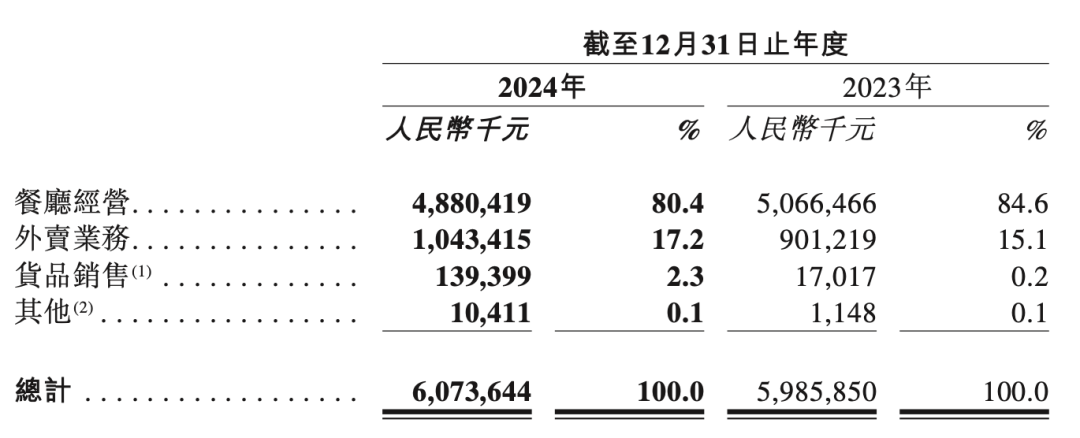 此外,2024年,九毛九外卖业务营收为从2023年的9.01亿元增加15.8%至2024年10.43亿元,占总收入的比例由2023年的15.1%上升至2024年的17.2%。