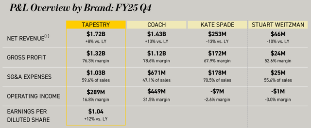 但与此同时,受关税与SG&A负担影响,Coach的成本压力显著提升。