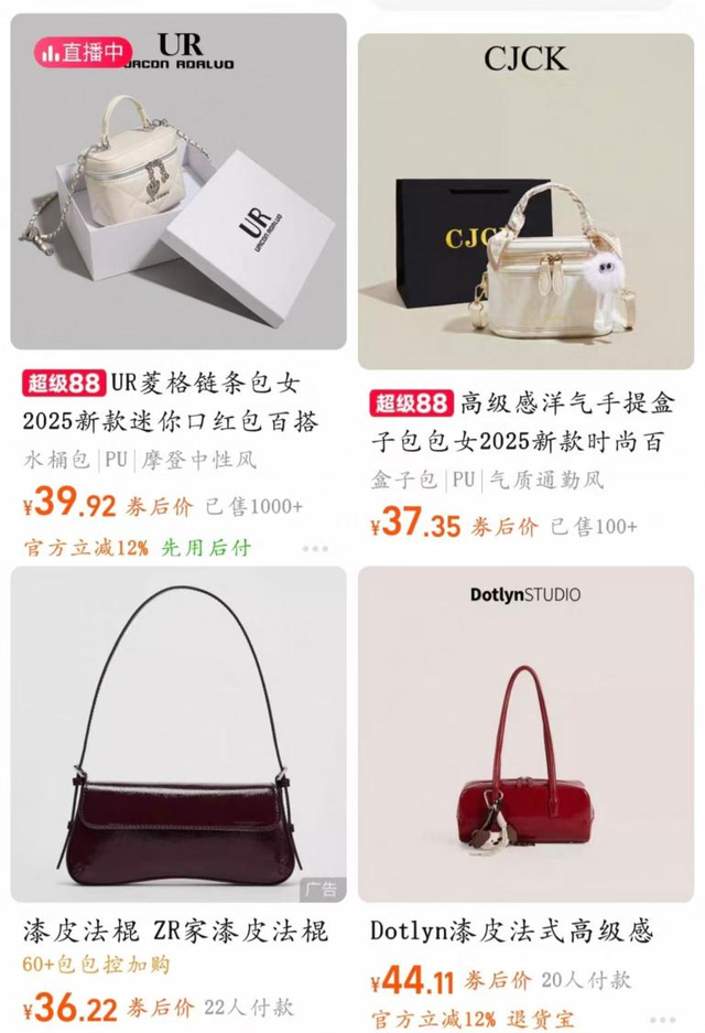 除此之外,在中国市场上,实力不俗的新品牌与白牌平替比比皆是。前述Coach的Empire Carryall、Trail等包包,尽管与大牌奢牌相比价格减少一位数,但国内平替的实力是,在此基础上仍能减少一位数,并且有的质量甚至不输。
