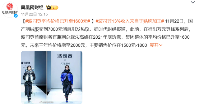 2023年冬天,#波司登均价突破1600元#的话题冲上微博热搜,让越来越多人们注意到这个老牌羽绒服巨头的高端化转型。彼时,波司登最高端的产品价格已经达到上万元一件。