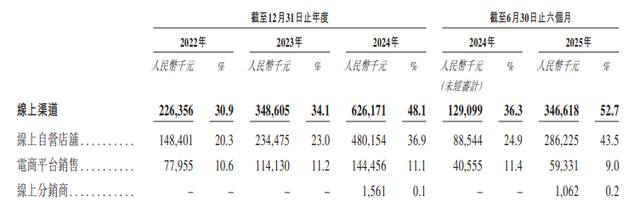 为加强宣传攻势,坦博尔还逐渐加码线上营销。根据招股书披露数据,2022-2025年上半年,坦博尔分别建立并运营了28家、47家、89家及100家线上自营店铺,规模增长迅猛。