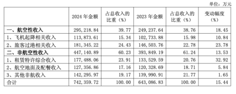 作为对比,2024年旅客吞吐量仅次于上海浦东机场的白云机场,非航收入占比则达到了60.23%。