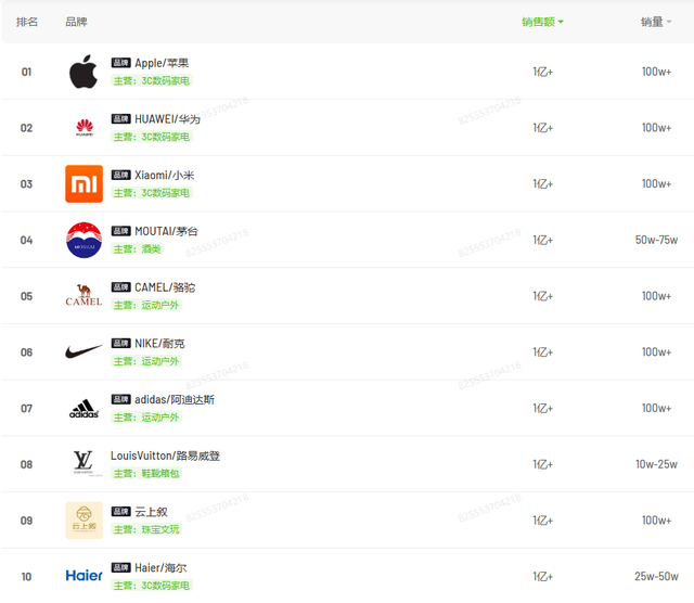 飞瓜品牌销售总榜显示,近一个月来,销售表现在骆驼之上的是苹果、华为、小米、茅台等一众体量庞大的3C巨头和白酒龙头;榜单前十的位置当中,只有3个运动户外品牌上榜,而骆驼力压耐克、阿迪达斯,成为行业第一。