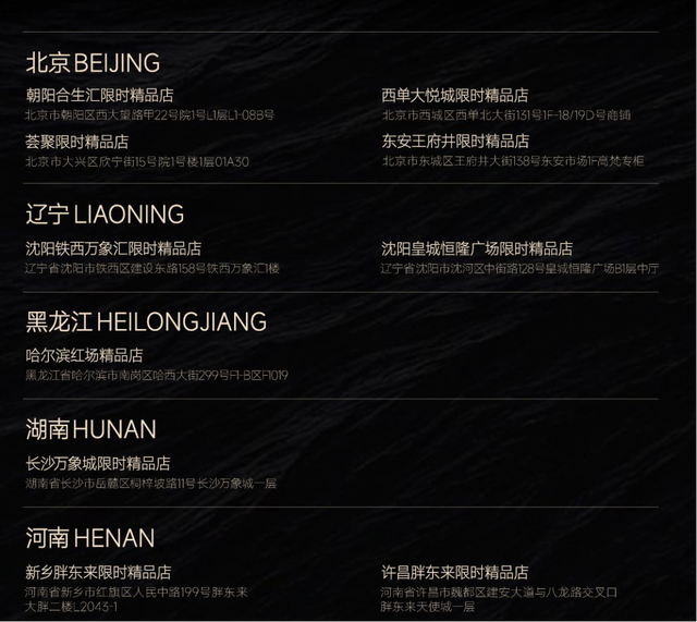 官网显示,高梵截至目前已完成10多家线下门店布局,覆盖北京、辽宁、黑龙江、湖南、河南等省市的多个商圈。