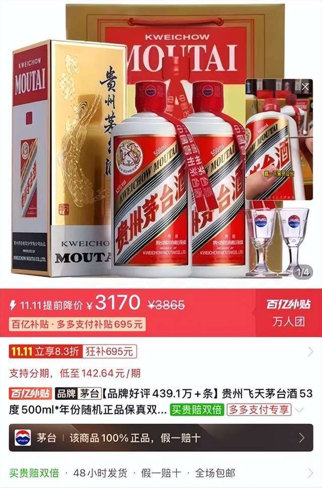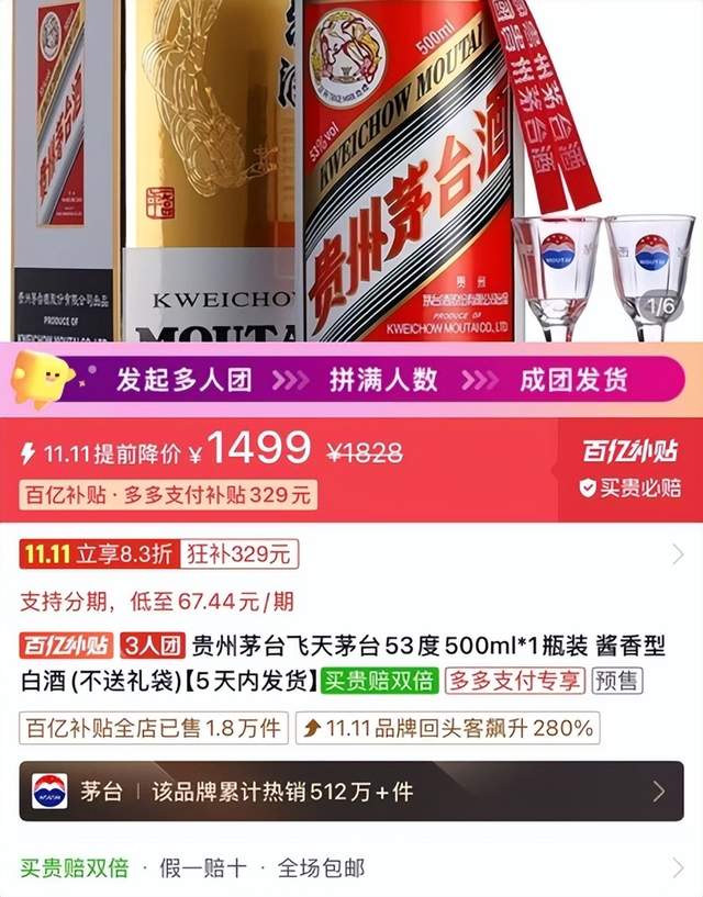 甚至在一些电商平台,叠加补贴、团购等各类优惠后,飞天茅台的单瓶售价已经降到了1499元/瓶的官方零售价。