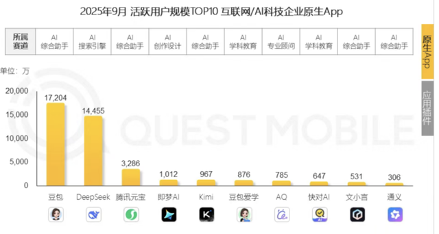 近日,根据多个媒体的报道,豆包的日活用户已经突破1亿人次,并且成为字节史上推广费用最少的DAU破亿产品。而根据Questmobile 8月、9月的数据,豆包的月活跃规模已经稳居AI综合助手产品的第一位。