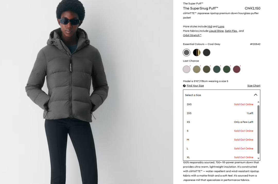 一方面,倚赖强大的供应链及产业基础,中国市场上物美价廉的产品比比皆是。以羽绒服为例,诸如坦博尔、鸭鸭、保姆鹅等大众价位羽绒品牌主力价位明显低于Aritzia,电商平台上还有大量广受欢迎的白牌,可将价格一降再降。