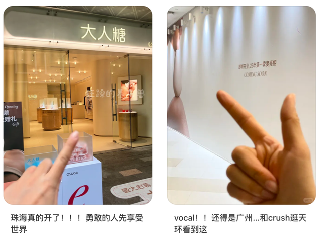2021年时,大人糖先用快闪店和慢闪店来打破商业体的固有认知,并用其极具特点的宣传内容吸引了固定受众,之后才平稳转向商场内的日常门店。