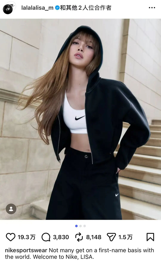 一是代言人大家庭扩员。从世界排名第一的职业匹克球选手安娜・利・沃特斯(Anna Leigh Waters)到音乐人邓紫棋,再到BLACKPINK成员Lisa,以及外媒传言的“10年8.9亿美元的天价库里”,耐克的国际代言人矩阵加速扩大,企图揽获更多关注。