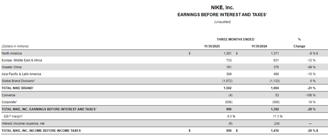 另一方面,耐克又太需要新鲜手段来挽救如今持续下挫的大中华市场。 2026财年第二财季,耐克大中华区营收同比下滑17%,息税前利润下降 49%。其中,直营业务营收下滑18%,数字业务营收下降36%,耐克自有门店营收下降5%,批发业务下降15%。